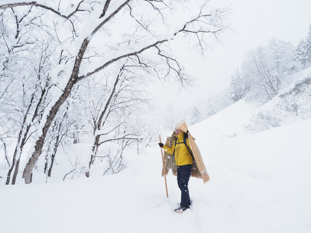 On the second day, we’ll head to Tamugimata village, the starting point for many routes into Mt. Yudono. There, we’ll meet a local backcountry ski guide and explore the mountain’s winter scenery together. For lunch, we’ll recharge with a comforting meal of duck soup and handmade soba noodles, a regional specialty. In the evening, you’ll stay at Yasuno Ryokan, a family-run inn where you can enjoy a hot spring bath and traditional Japanese hospitality.
